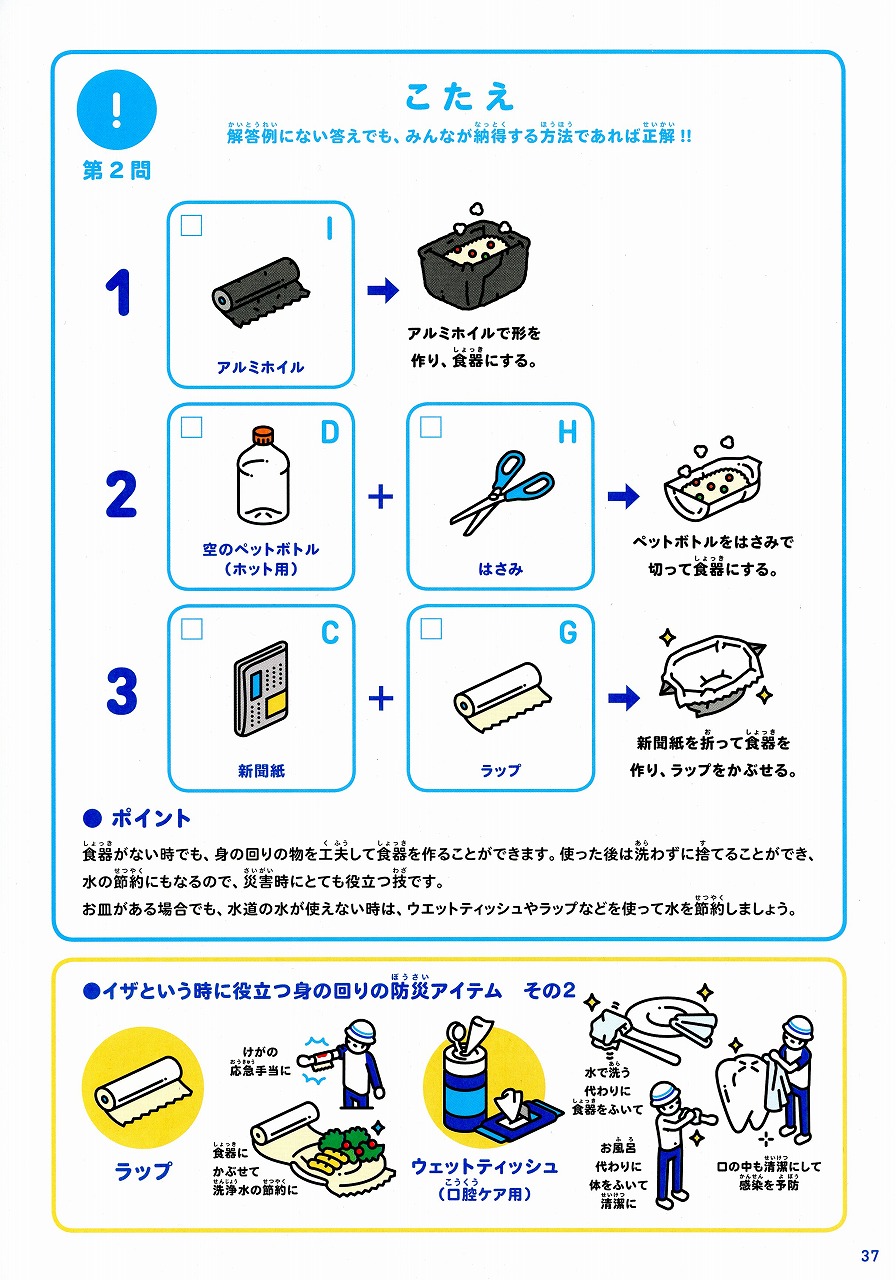 問1で電気やガスが止まってしまった場合、調理が出来なくなってしまいます。