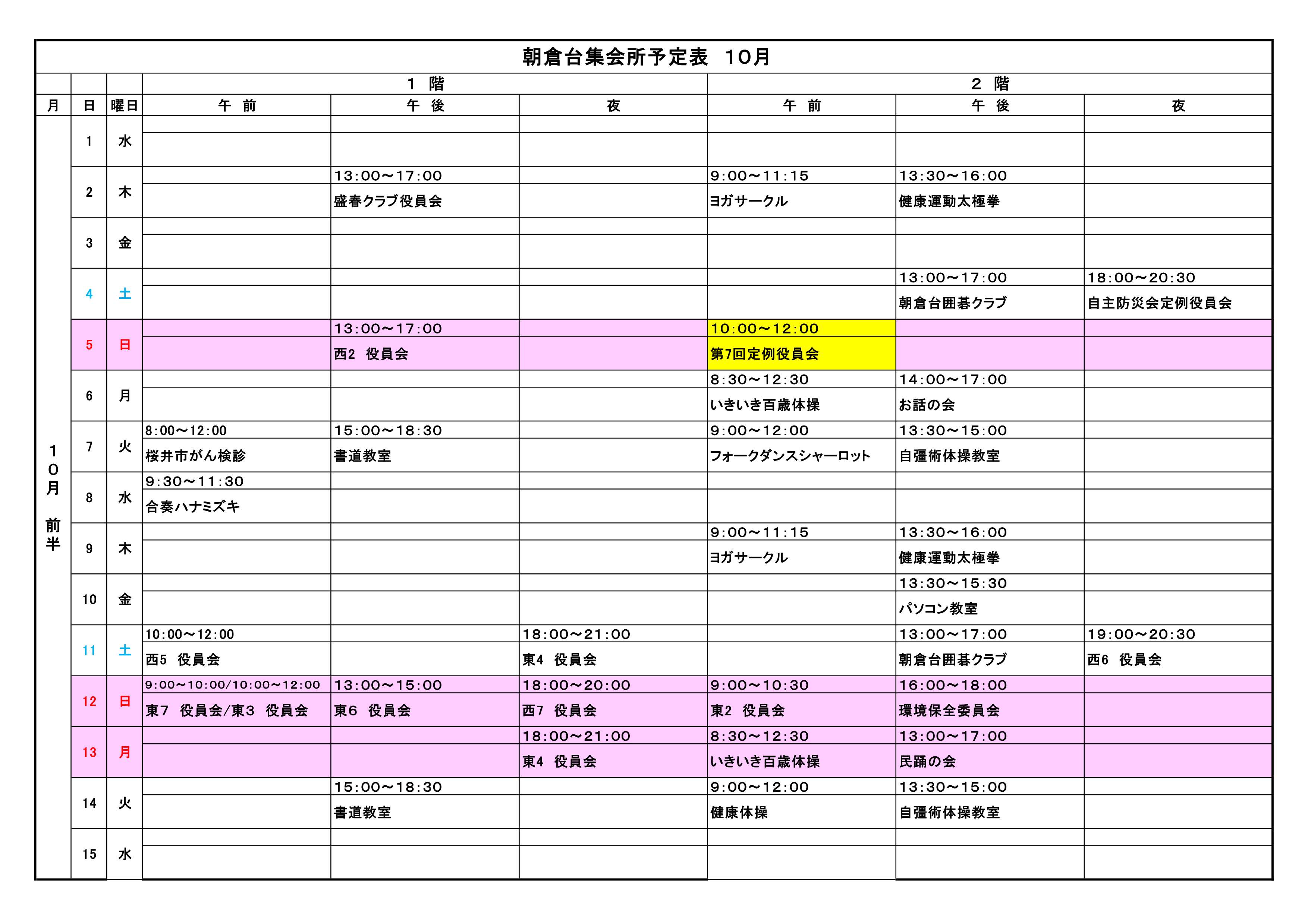 月別集会所利用予定