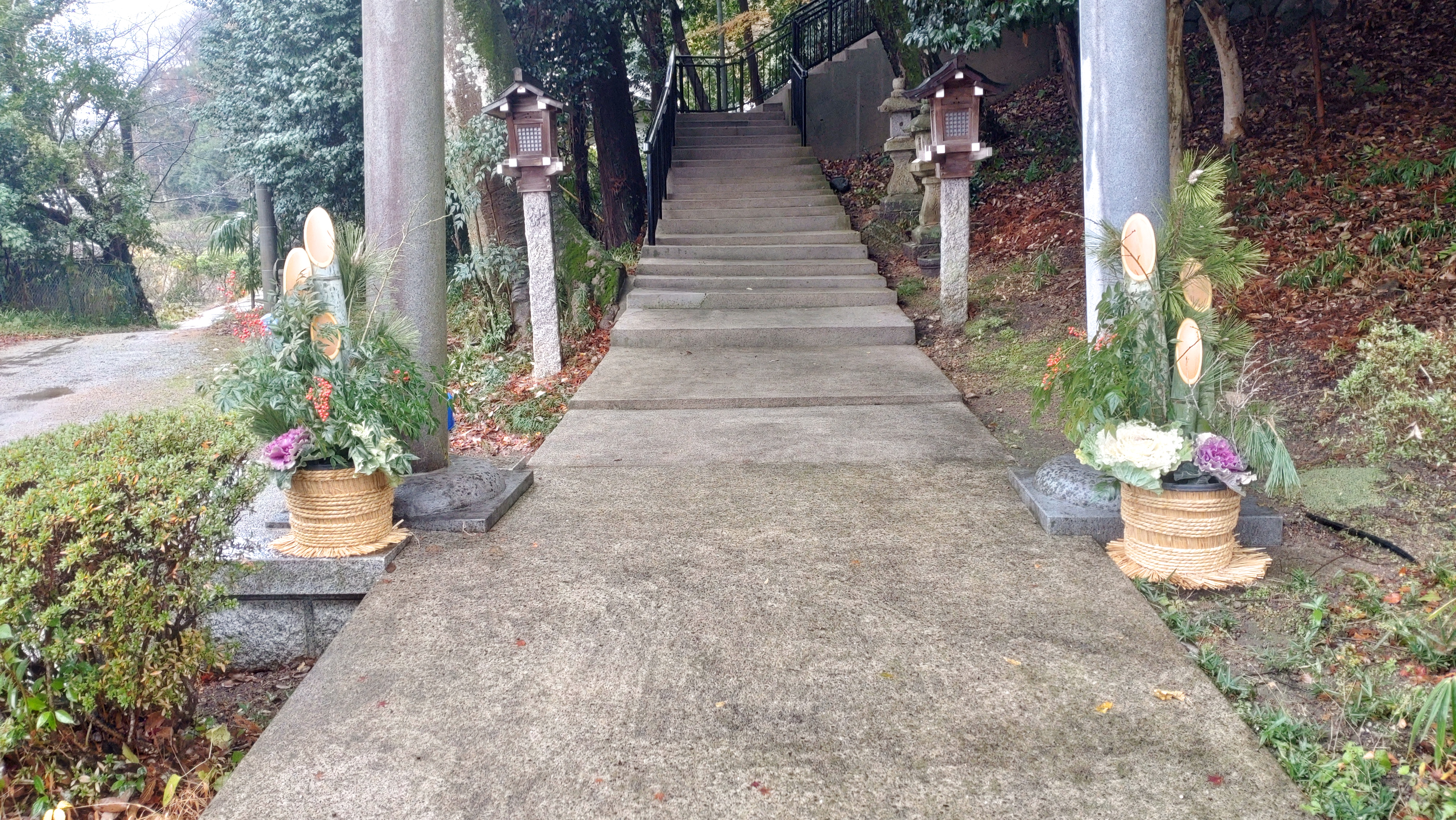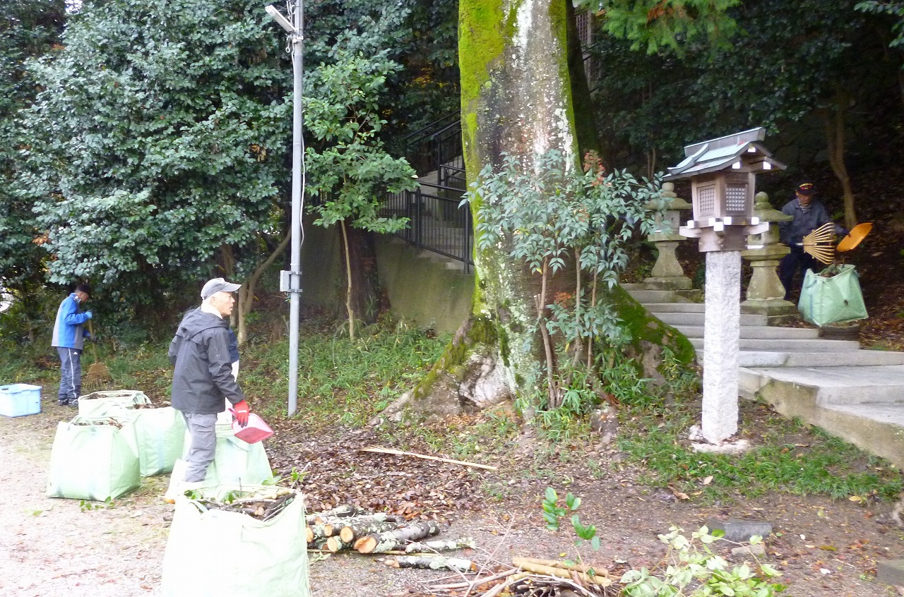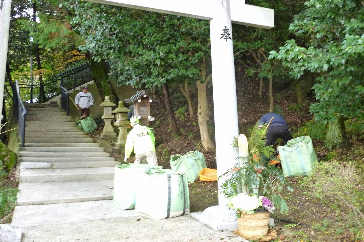 12月21日(日) 朝倉台ボランティア有志で団地下の素盞嗚神社境内の落ち葉枯れ枝等の清掃を実施しました 今年も年の瀬が迫りましたので1年の感謝と新年を迎える準備として、朝倉台北側近鉄線路横にあります素盞嗚神社境内の落ち葉清掃と門松造りを朝倉台ボランティア有志で行いました。 これで新年をお迎えする準備完了です。神様もお喜びのことと思います。 皆様お疲れ様でした。(菅原) トップページに戻る