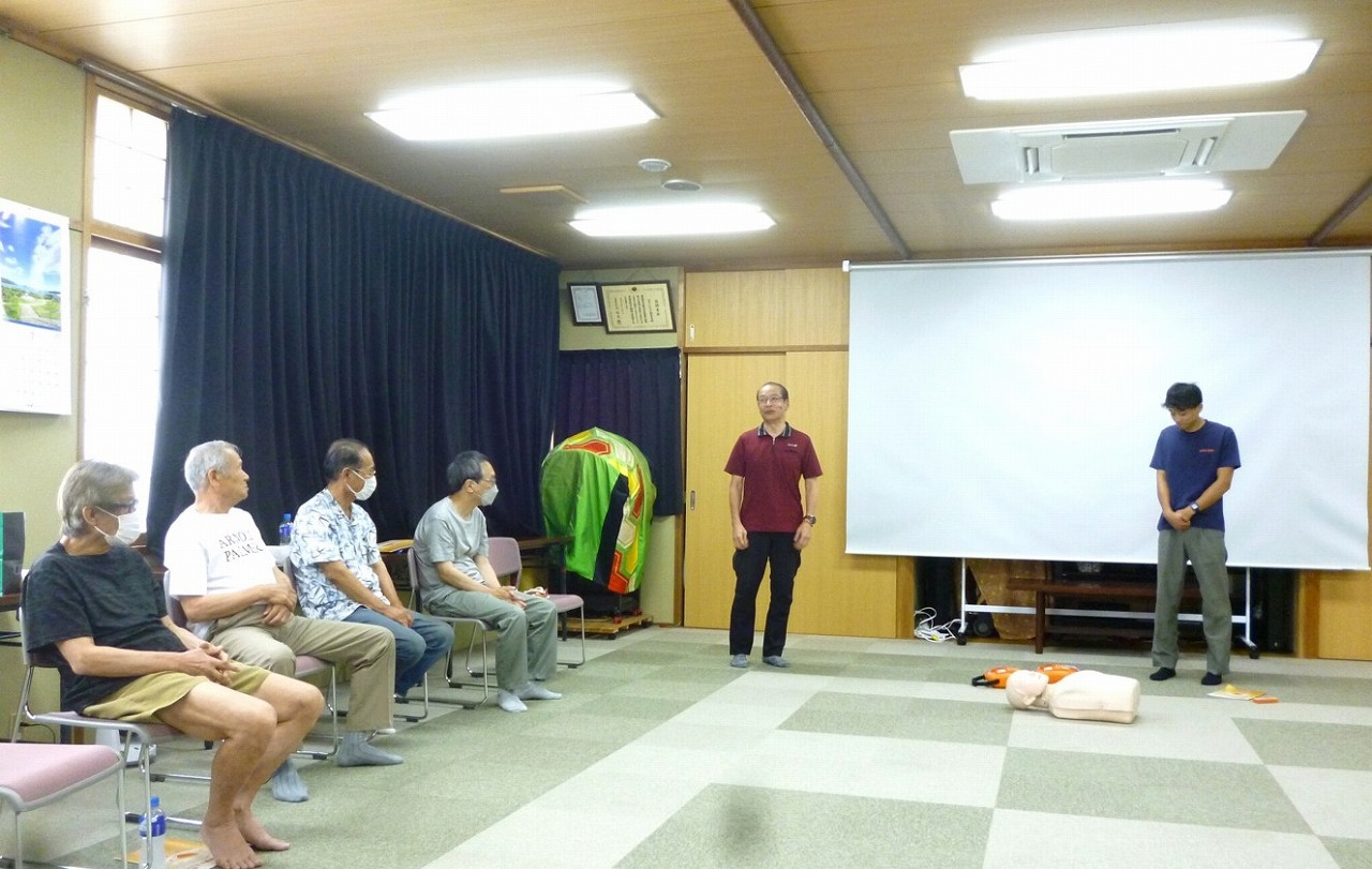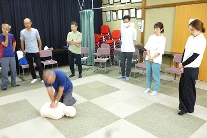 7月13日(日)朝倉台自主防災会主催の第一回「救命講習会」が集会所で開催されました。 コロナ禍の年から密を避けるため、15名のワクで2回に分けて実施されることになり、今回は、第一回目の「防犯防火委員会」会員15名が対象でした。 皆さん、最初はやや緊張気味でしたが、段々と盛り上がり、結構、楽しい雰囲気の中、3時間コースを修了しました。 最後に、松尾委員長から受講者を代表して、桜井消防署救命士の方2名様は夜勤明けにも拘わらず、朝倉台のためにご協力下さいまして誠にありがとうございましたと御礼の挨拶がありました。(坂口) トップページに戻る