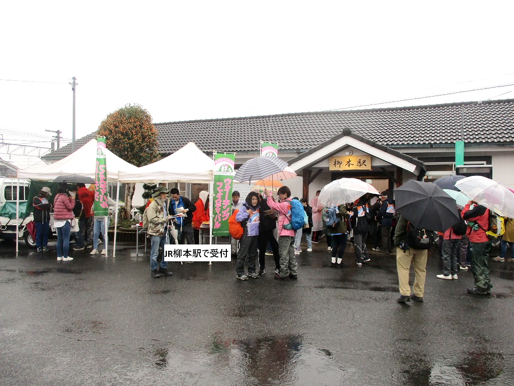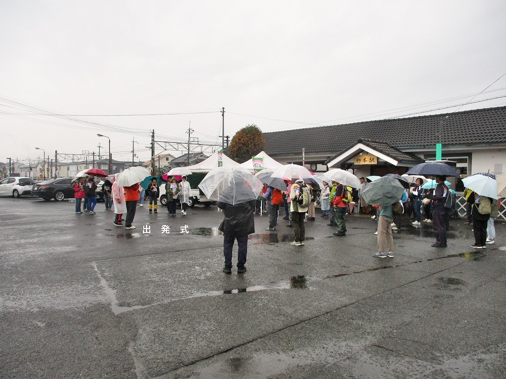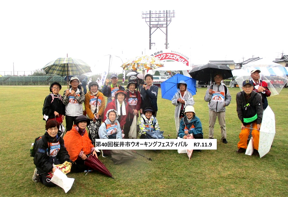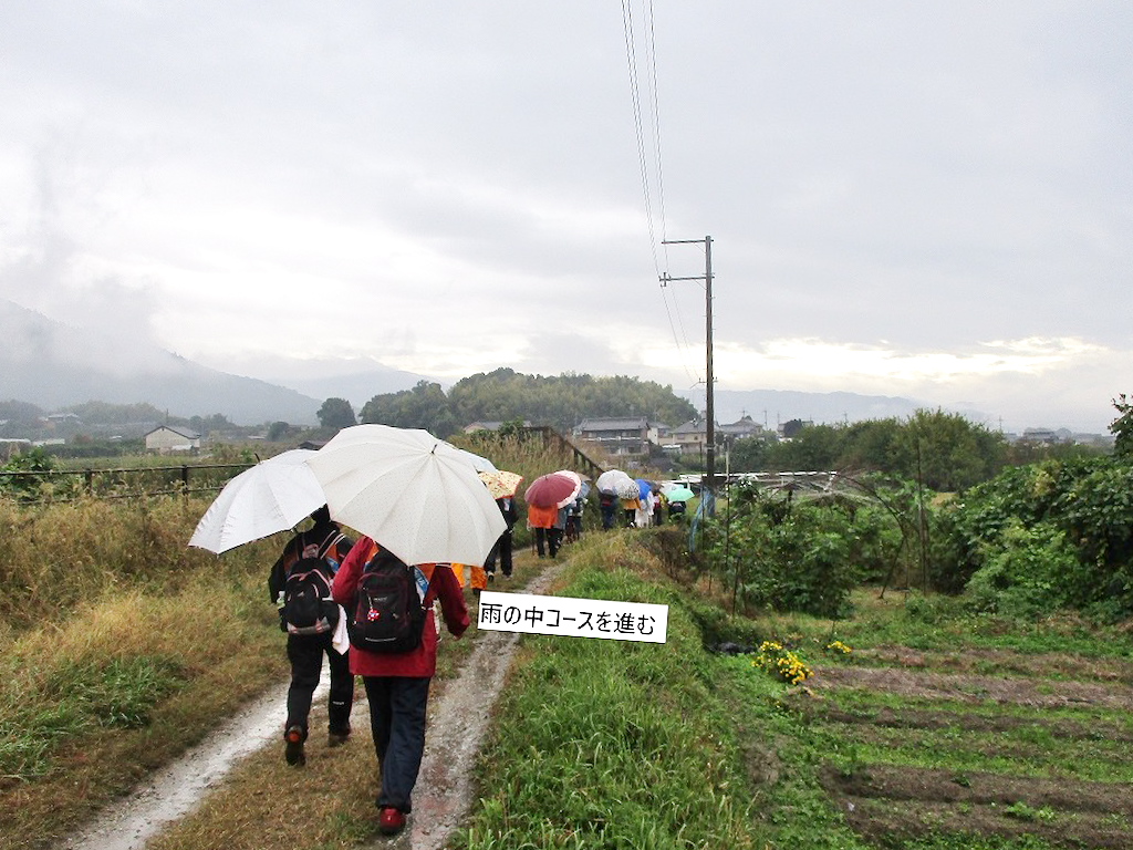 あいにくの雨模様の天候でしたが、フェスティバルは予定通り開催され、私たち参加者19名(男性7,女性12)は雨にもめげず、全員無事完歩しました。