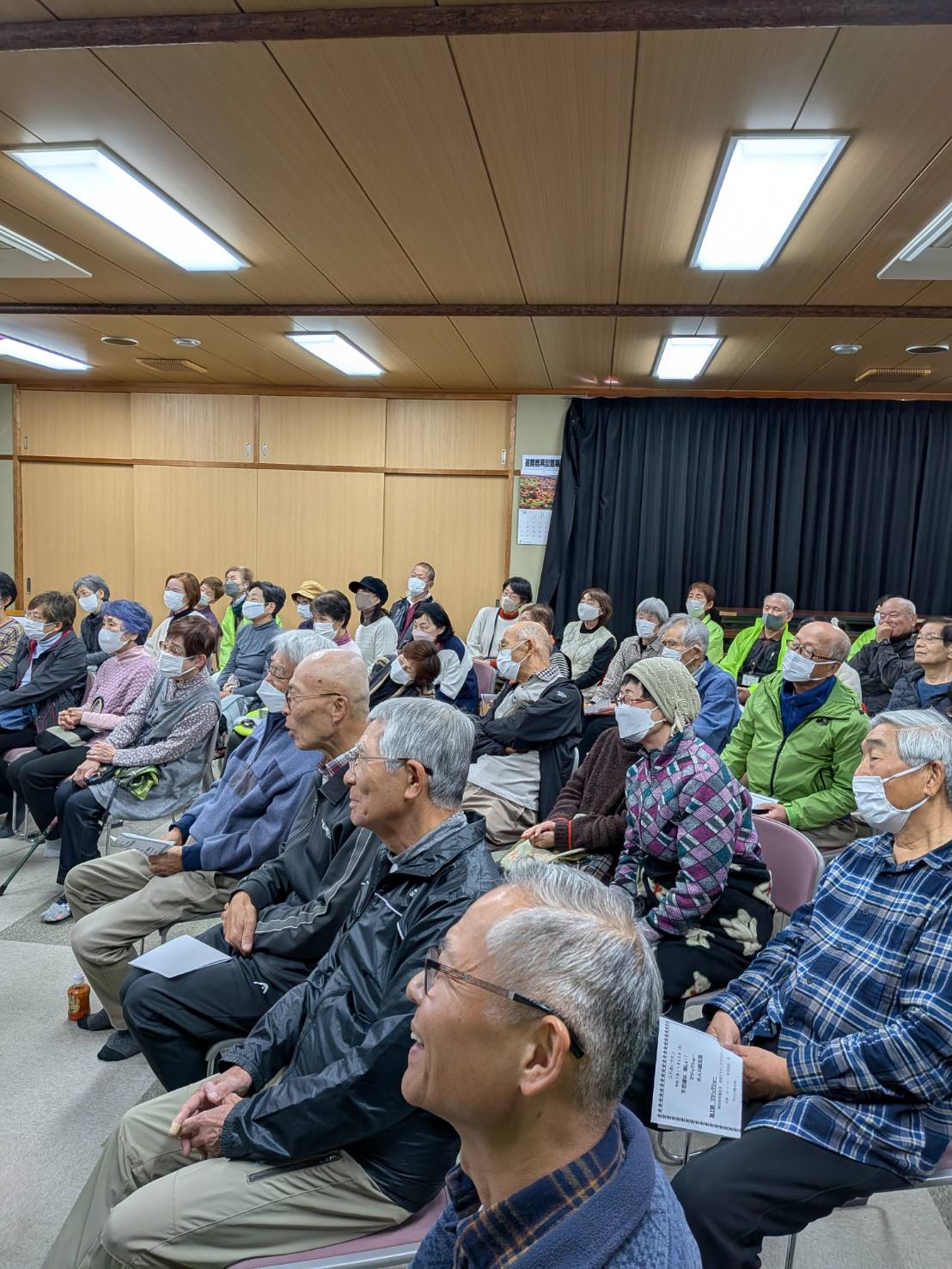 事前PRで皆さん楽しみにしておられ、51名の多くの方に参加していただき、スタッフを含めると57名でした。中には朝倉台以外の方にも参加いただき、橿原市からも2名の方がぜひ見学させてほしいと言って来ていただきました。